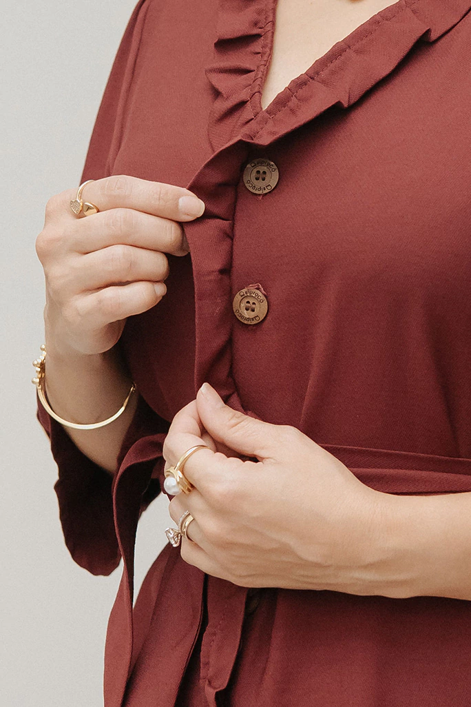 Os babados e franzidos criam um movimento delicado, enquanto os botões de coco reforçam o cuidado artesanal. A faixa na cintura garante versatilidade, permitindo diferentes formas de uso. Um vestido pensado para acompanhar você com autenticidade em todas as ocasiões.