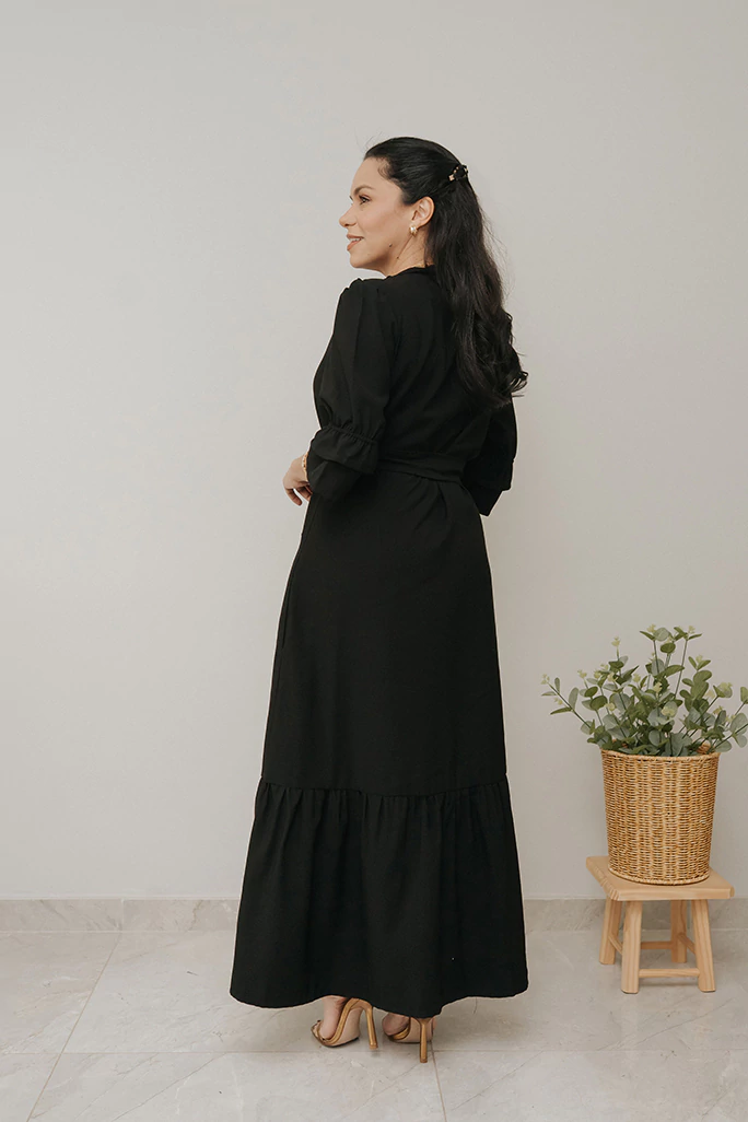 Os babados e franzidos criam um movimento delicado, enquanto os botões de coco reforçam o cuidado artesanal. A faixa na cintura garante versatilidade, permitindo diferentes formas de uso. Um vestido pensado para acompanhar você com autenticidade em todas as ocasiões.