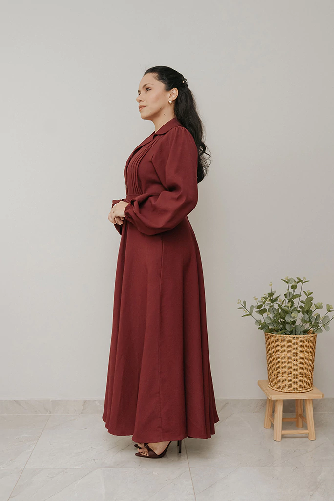 Com design atemporal e romântico, o Vestido Midi Promessa foi pensado para realçar a feminilidade com sofisticação e leveza. As mangas longas finalizadas com elástico no punho trazem conforto, enquanto o franzido delicado nos ombros e a gola com frisos frontais até a cintura destacam o cuidado nos acabamentos. O fechamento em botões de coco reforça o charme natural da peça, que combina versatilidade e autenticidade.